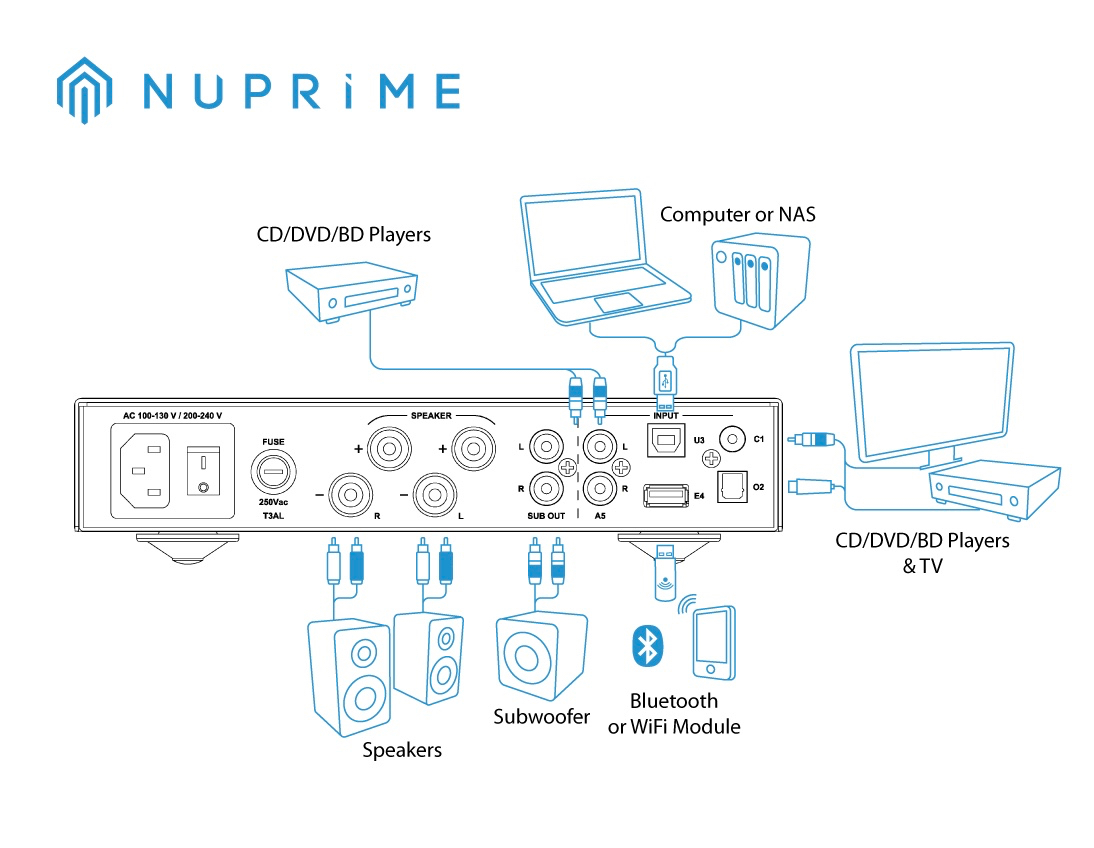 NuPRIME IDA-8 Ampli Intégré 2 x 100 Watts Class A+D sous 8Ω avec DAC & Port Sans Fil