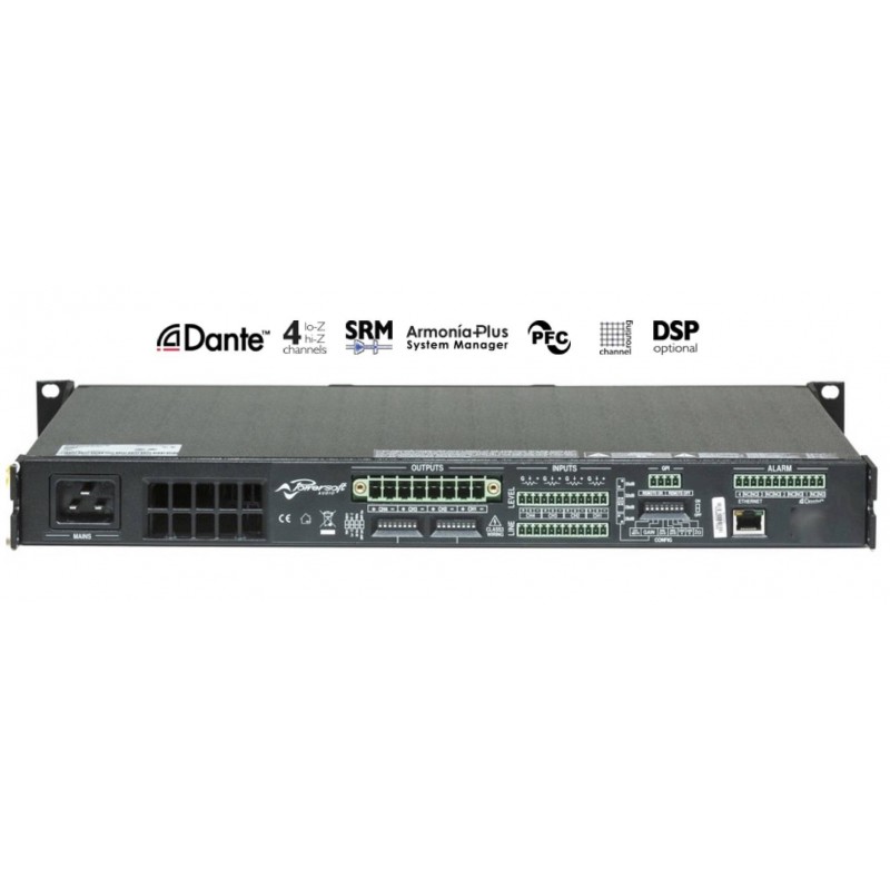 Le QUATTROCANALI 1204 est un amplificateur 4 canaux polyvalent conçu pour fonctionner aussi bien en basse impédance (à partir de 2Ω) qu'en haute impédance Hi-Z (70V/100V). Version DSP + AES 67.