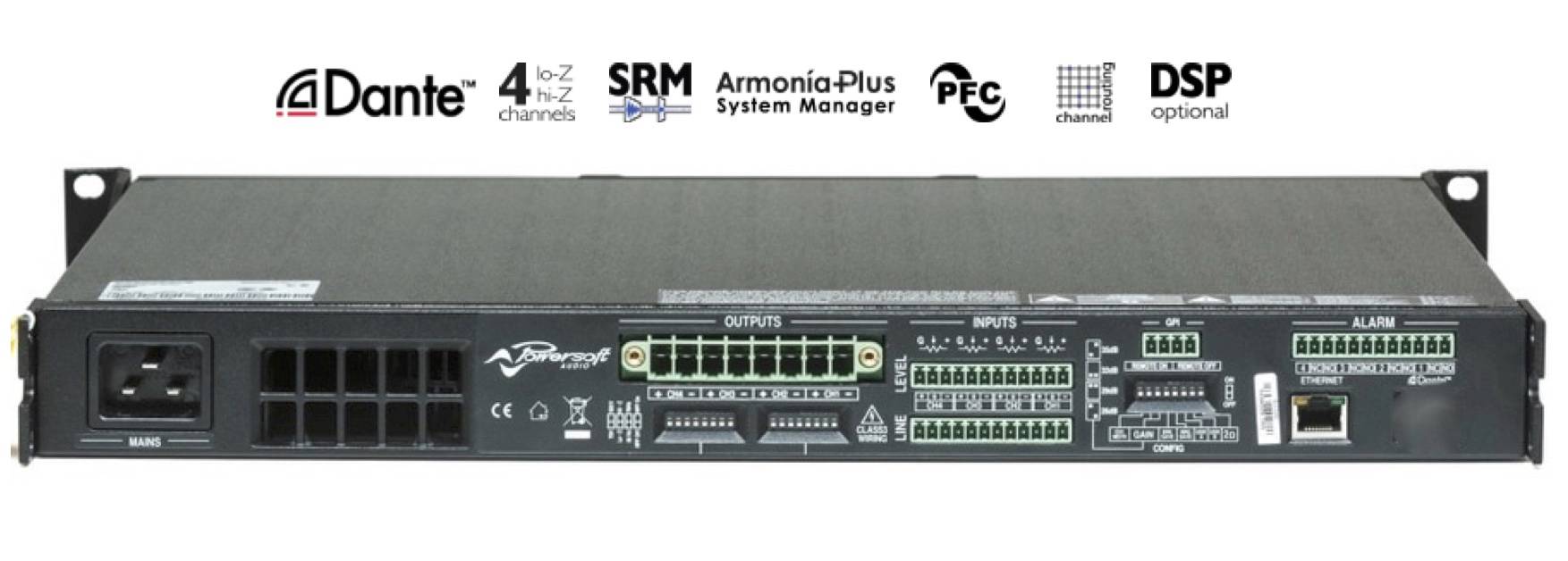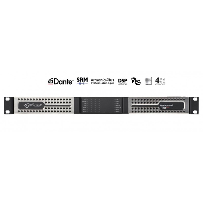 Le QUATTROCANALI 1204 est un amplificateur 4 canaux polyvalent conçu pour fonctionner aussi bien en basse impédance (à partir de 2Ω) qu'en haute impédance Hi-Z (70V/100V). Version DSP + DANTE.
