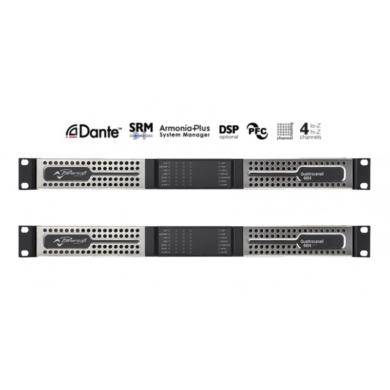Quattrocanali offre la qualité sonore réputée et la fiabilité de toutes les plateformes d'amplification Powersoft. Avec des puissances de sortie allant de 300 à 1200 Watts par canal, un contrôle en profondeur et des capacités de monitoring, la série Quattrocanali est conçue pour être facilement adaptée à tous les projets d’installation de petite à moyenne dimension.