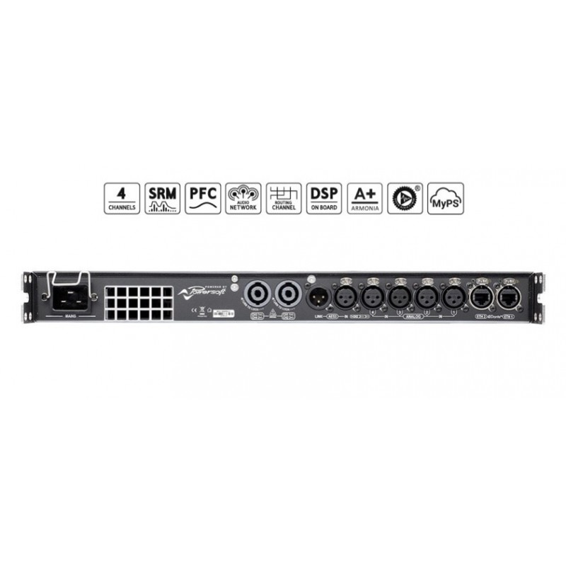 Le T904 fait partie de la nouvelle gamme de Powersoft dédié au Touring, muni d'un DSP inétgré et piloté par le logiciel propriétaire ArmoniaPlus. Version DSP + AES3.