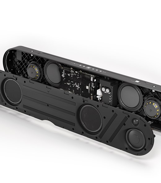 Deux tweeters ultralégers à dôme souple de 21 mm apportent clarté et définition aux hautes fréquences ainsi qu´au haut médium, rendant ainsi les dialogues plus ciselés et précis. Dans son ensemble, le message sonore est transparent, détaillé et cohérent sur tout le spectre sonore, performance rare pour une barre de son.