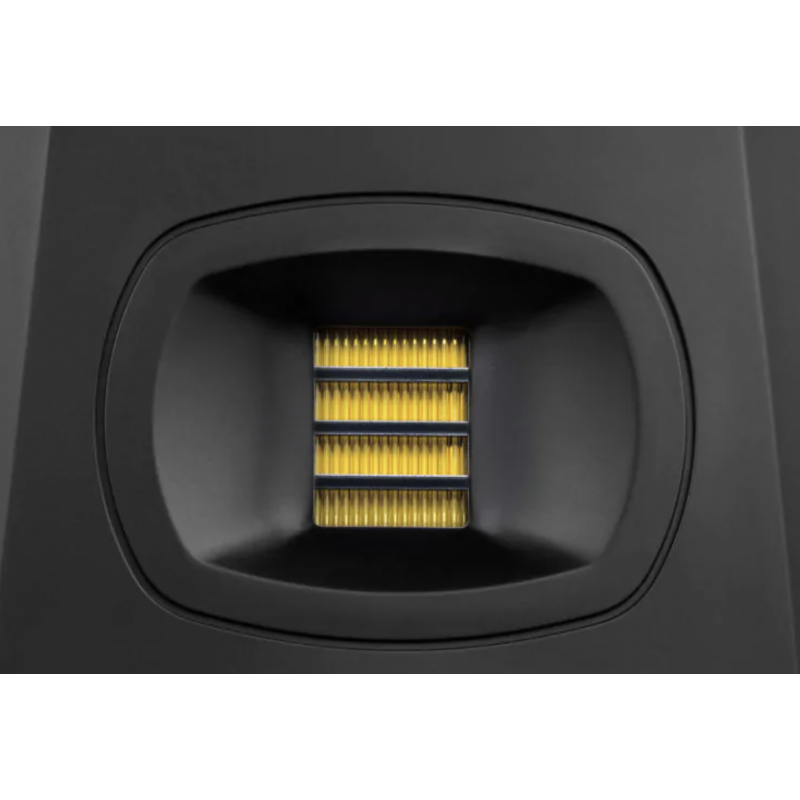 Le nouveau tweeter à ruban U-ART de 1,9″” utilisé notamment dans les modèles de Série T, est constitué d’un film haute technologie en polyamide. Il offre une réponse dans les hautes fréquences étendue jusqu’à 25 kHz avec une parfaite qualité sonore – quelque chose d’inédit sur des enceintes de monitoring dans cette gamme de prix, et une solution révolutionnaire pour enregistrer et mixer en haute résolution sans se ruiner. À la différence des tweeters à dômes ou à cônes qui utilisent un piston pour déplacer l’air et reproduire le son, le tweeter U-ART emploie un ruban plissé qui aspire l’air dans ses plis et le rejette alternativement lorsque ces plis s’écartent et se pressent l’un contre l’autre en fonction du signal audio entrant. Cette conception produit quatre fois plus de mouvement de l’air que ne le ferait un tweeter à piston, créant ainsi des niveaux de pression acoustique (SPL) accrus et un niveau de distorsion moindre.