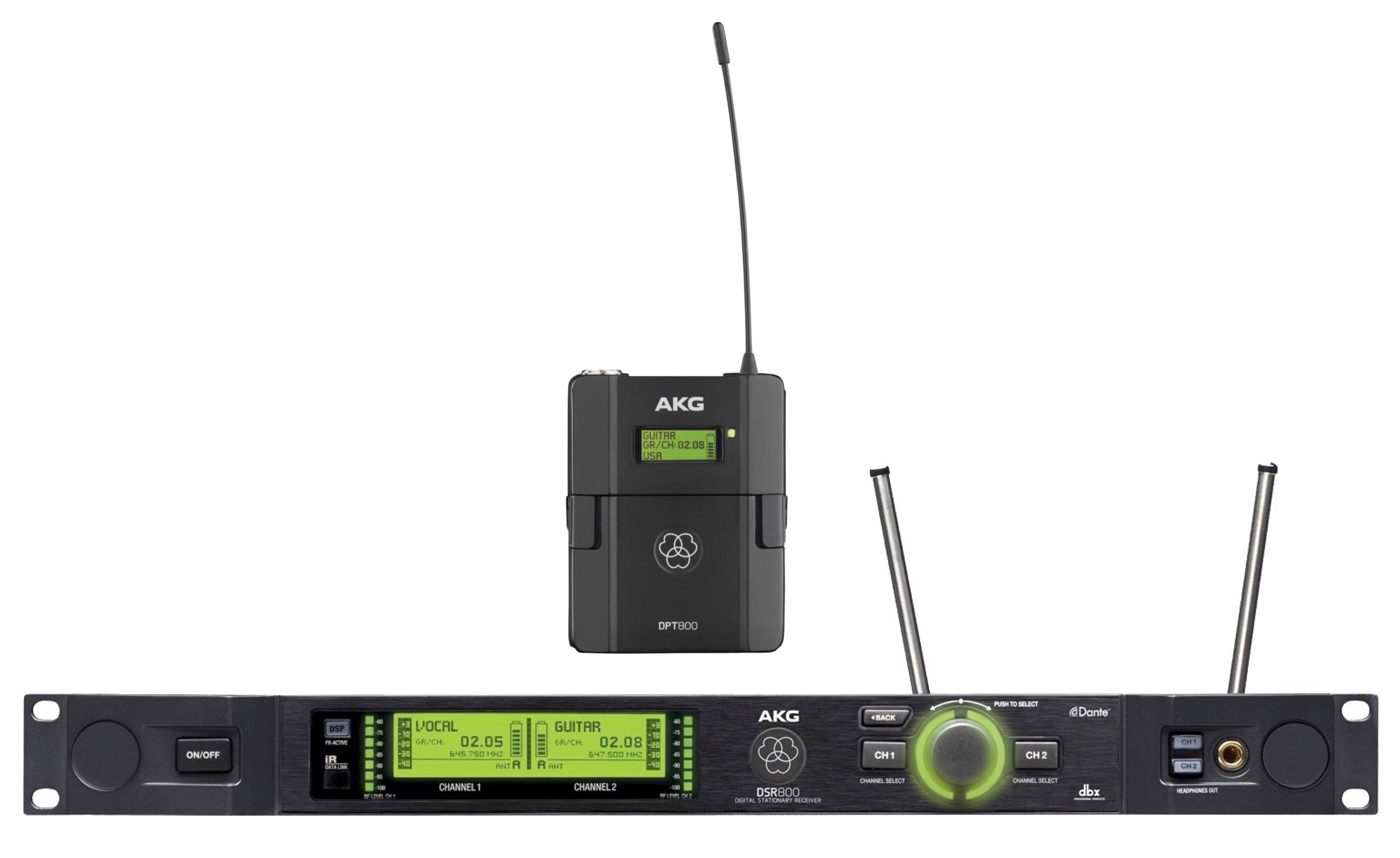 Le récepteur numérique DSR800 2 canaux dispose d’une importante largeur de bandes de 150 MHz, permettant une configuration ergonomique de systèmes multicanaux dans des environnements radio fréquences difficiles. Il est conçu pour travailler avec les microphones à main numériques DHT800 et les émetteurs numériques de poche DPT800.