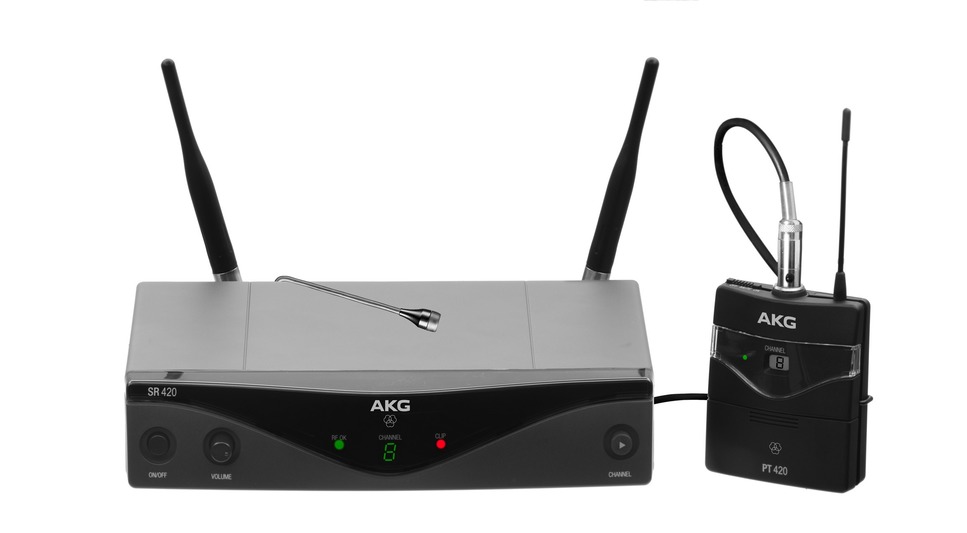Le Set AKG WMS420 PRESENTER SET est équipé d'un récepteur AKG SR420, d'un microphone cravate C417L et d'un émetteur de poche PT420.