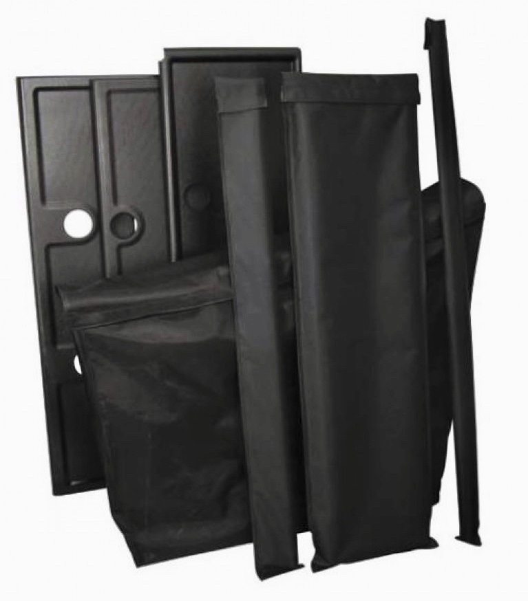 Le stand est assemblé en dépliant le cadre, en fixant le poteau de soutien (si nécessaire), en mettant en place les étagères primaires en place, puis le panneau acrylique avant. Suivant le plateau incliné, les panneaux latéraux acryliques et plaque de protection sont ajoutés. La dernière étape de l'assemblage est d'accrocher le panneau de carénage sur le devant de l'appareil. L'ensemble du processus de montage prend moins de cinq minutes!