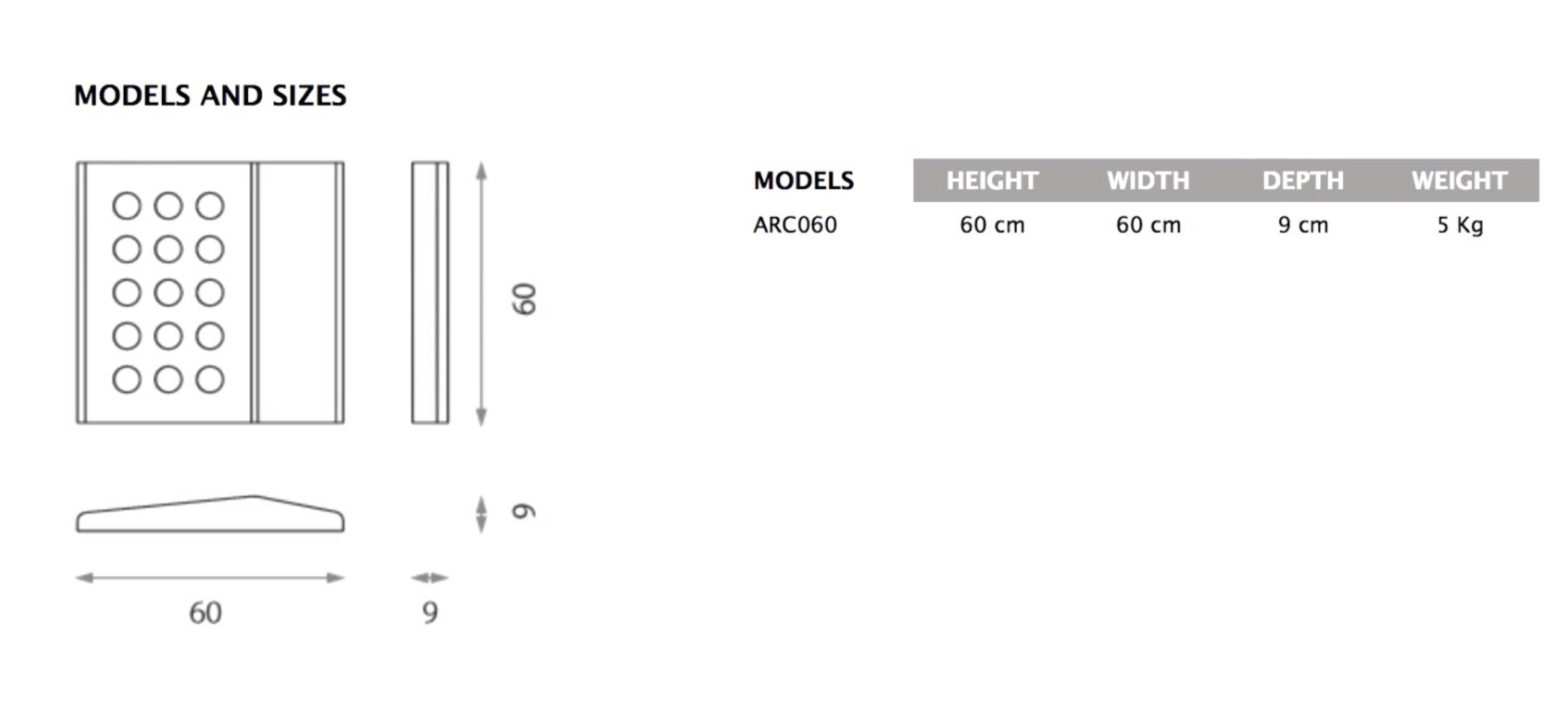 Dimensions : Longueur 60 cm, Largeur 60 cm, Epaisseur max 9 cm