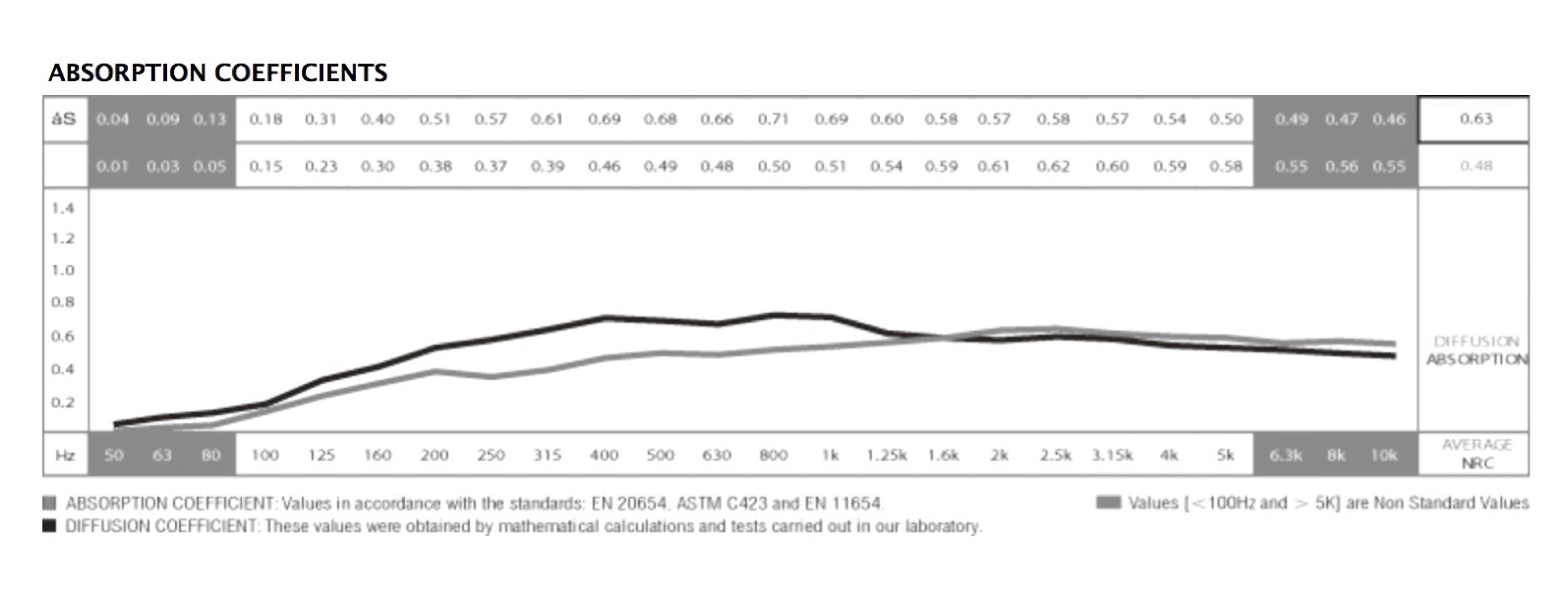 * Diffusion moyenne: 0,48 [> 100 Hz: <5 kHz].