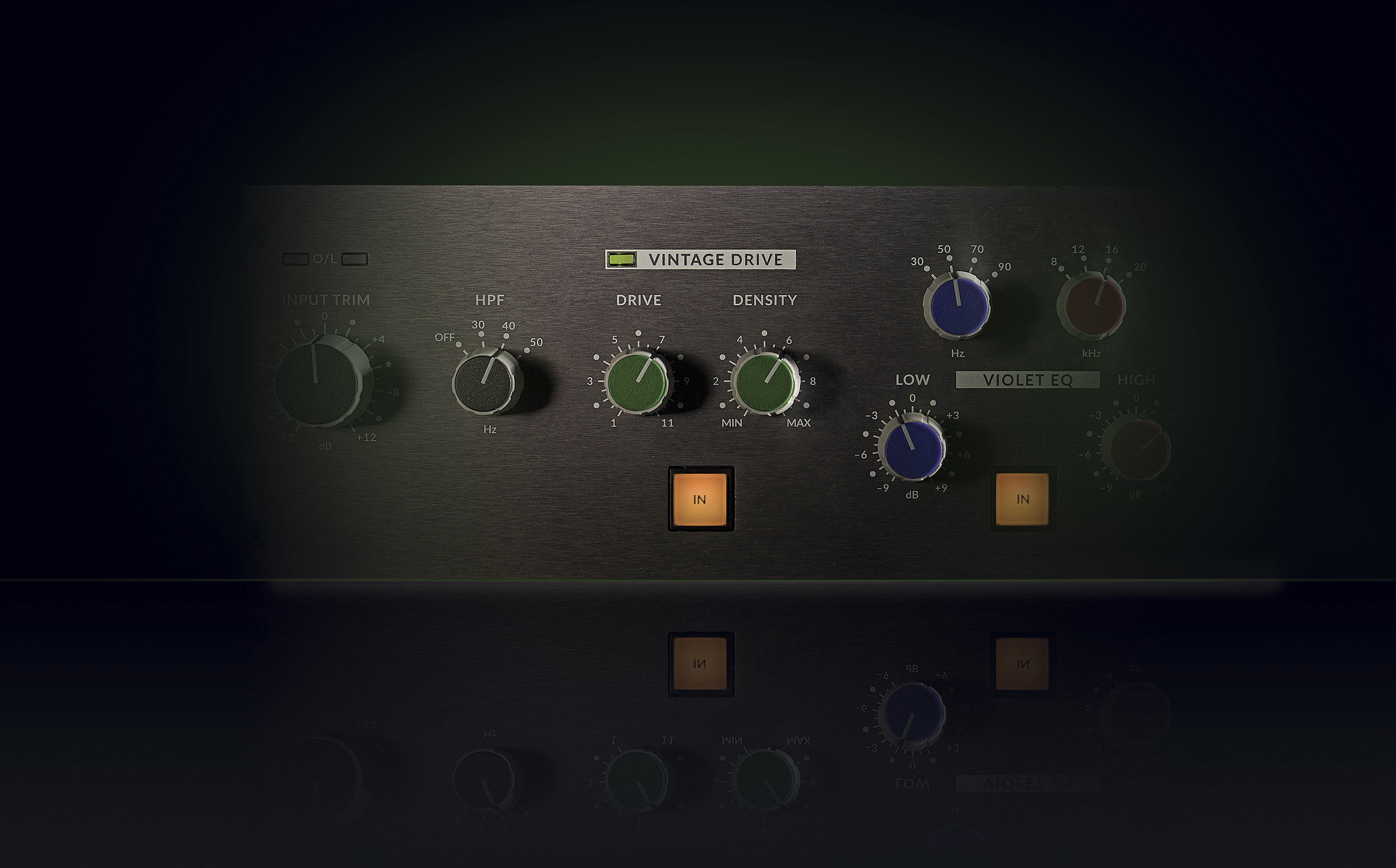 +/- 12 dB d' entrée et de commandes de compensation de sortie, une LED de surcharge d'entrée, une grande mesure de maintien de crête, un troisième front-end ordre filtre passe-haut avec trois coupure sélectionnable de fréquences, et des indicateurs d’état tricolores pour les sections Vintage Drive et HF Comp.
