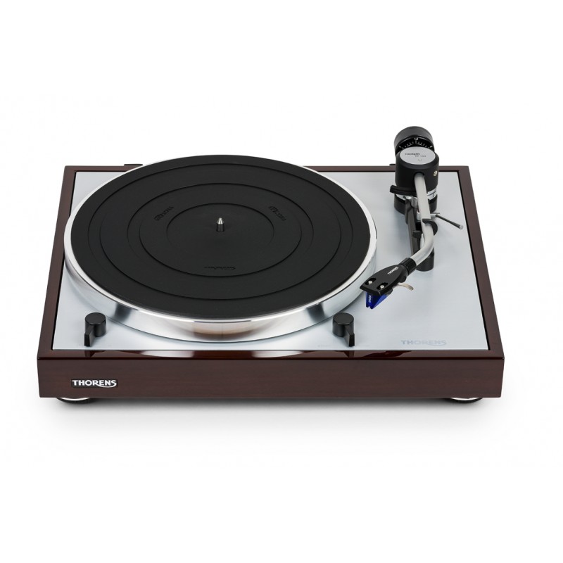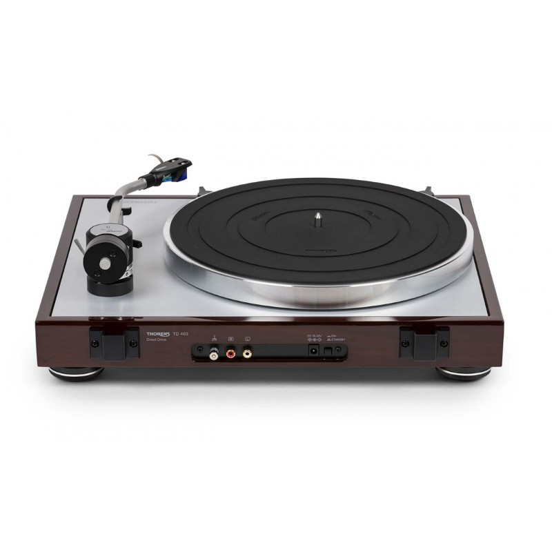 La Thorens TD 403 DD est une platine vinyle à entrainement direct munie d'un pré-amplificateur phono intégré switchable, d'un bras en carbone et d'une cellule Ortofon 2M BLUE.