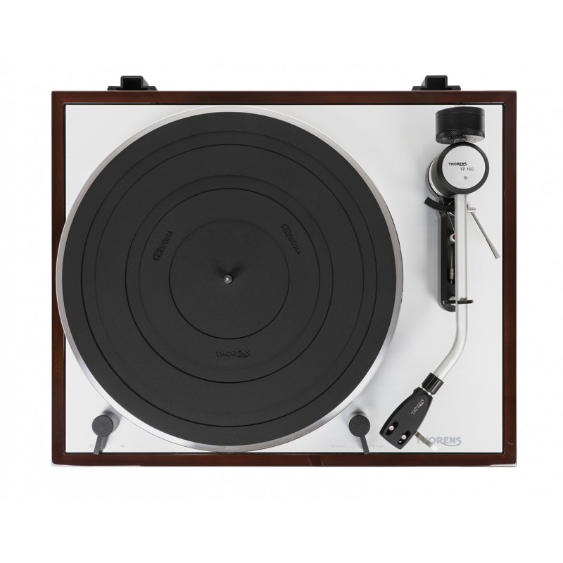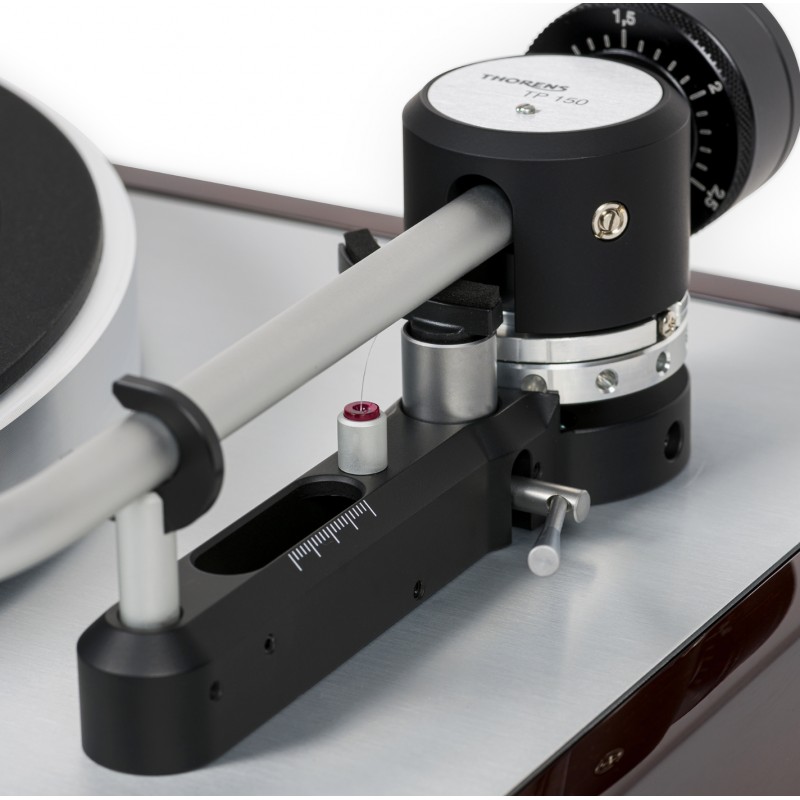 Le bras de lecture Thorens TP 150 est un modèle coudé dérivé de la platine Thorens TD 1500. Réglable en hauteur et en azimut, il possède une masse effective de 14 grammes et un connecteur SME pour faciliter le changement du porte cellule. L'anti-skating est un système de poids coulissant attaché à un fil de nylon guidé sur un roulement à rubis situé dans la base du bras.